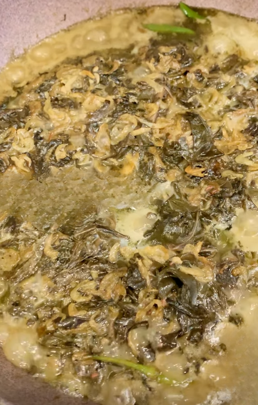 A rich, creamy Filipino classic made with slow-cooked taro leaves simmered in coconut milk, aromatics, and chilies. The flavors are deep, earthy, and perfectly balanced, with tender leaves soaking up every drop of coconut goodness. Comforting, hearty, and best enjoyed with steamed rice.